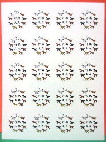 馬九行久 (うまくいく)シール『メール便可』 [直径2cm×20ピース]
