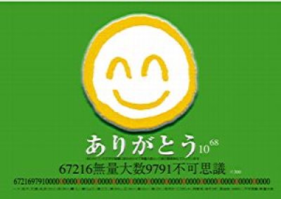 ありがとうの文字を縦横に組み合わせて、数の最高単位無量大数の100倍まで入れました。