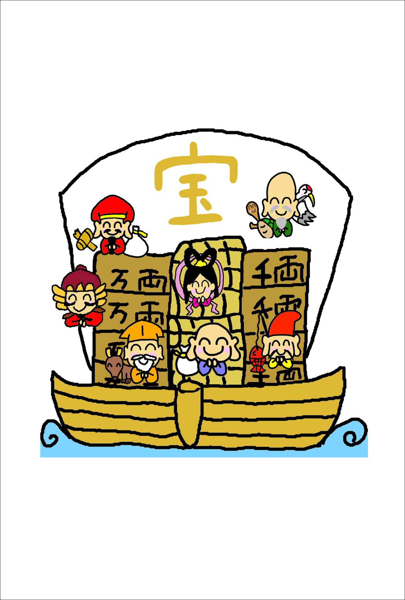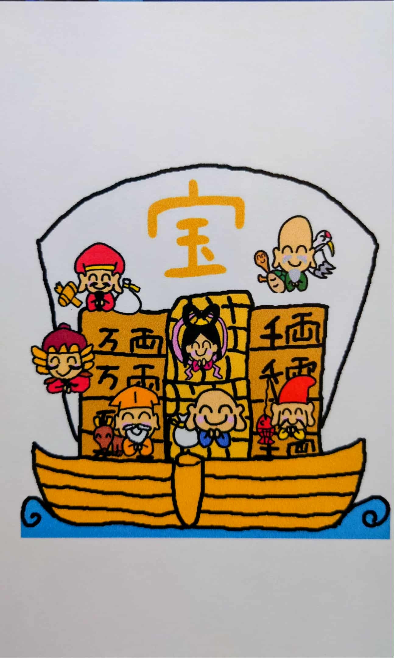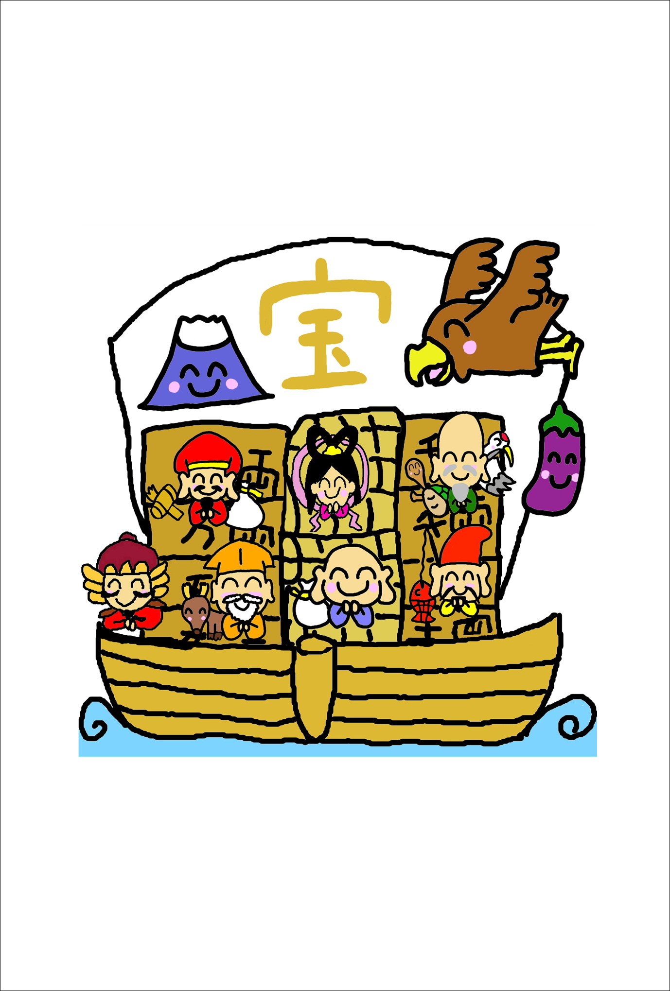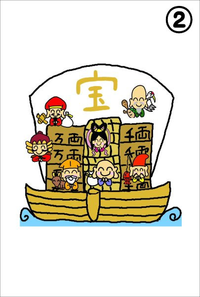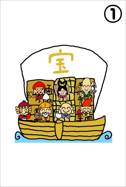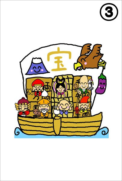 宝船のみの(1)(2)と一富士、二鷹、三茄子の(3)の3種類があります。