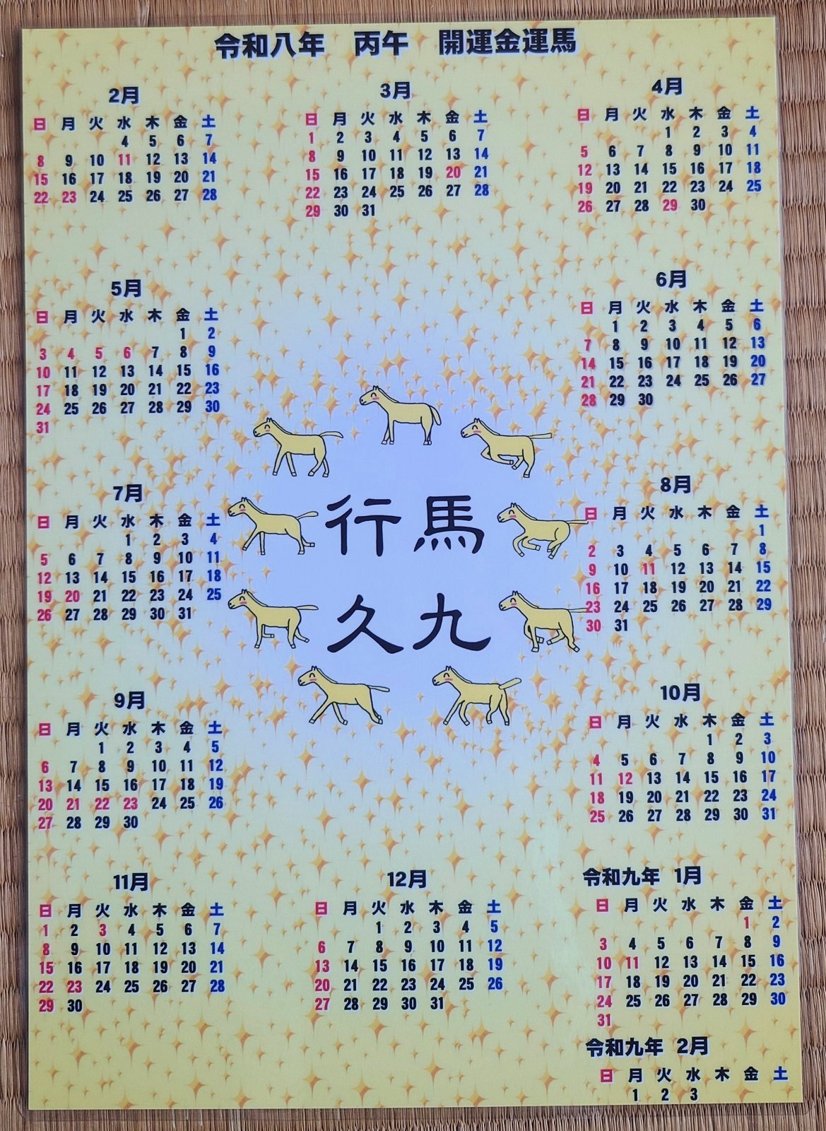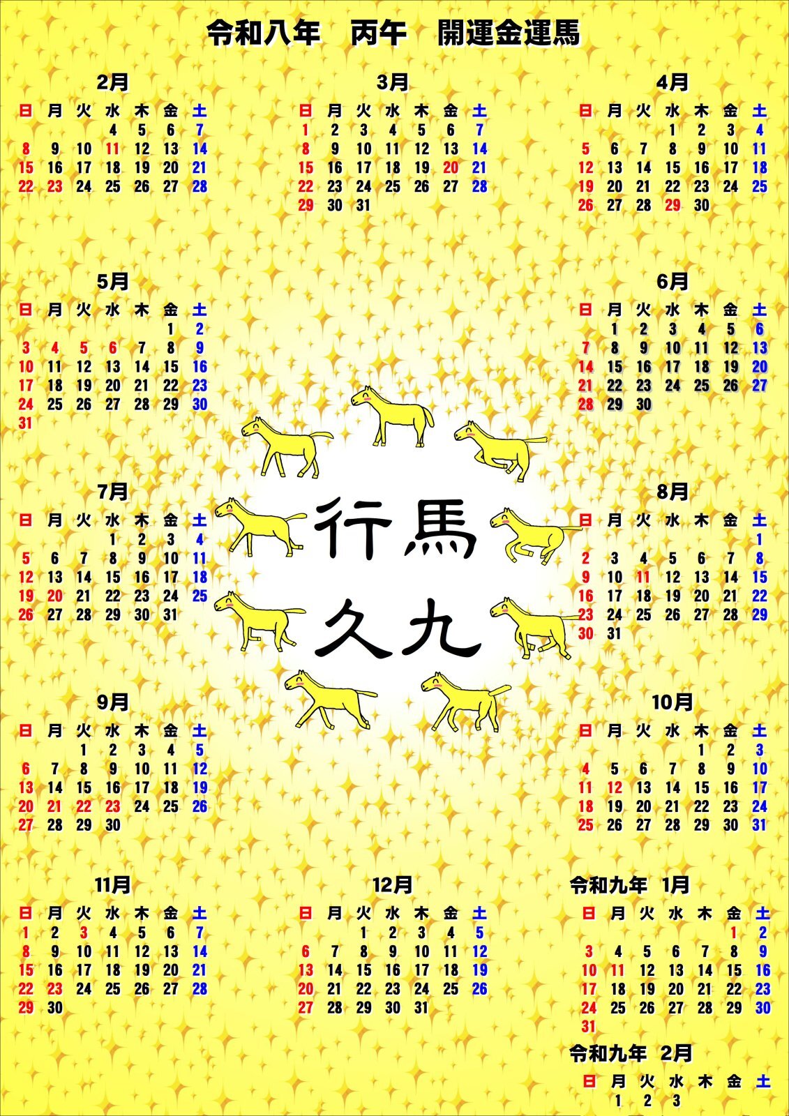 発売中・送料無料【立春新年版・丙午】2026年くれいん舎オリジナル暦(A4サイズ) [開運金運馬(カイウンキンウンバ)]
