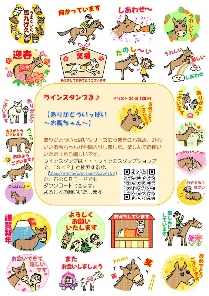 【入荷待ち】SKPラインスタンプ記念シール28「ありがとういっぱい〜お馬ちゃん〜」『メール便可』 [ハガキサイズ]