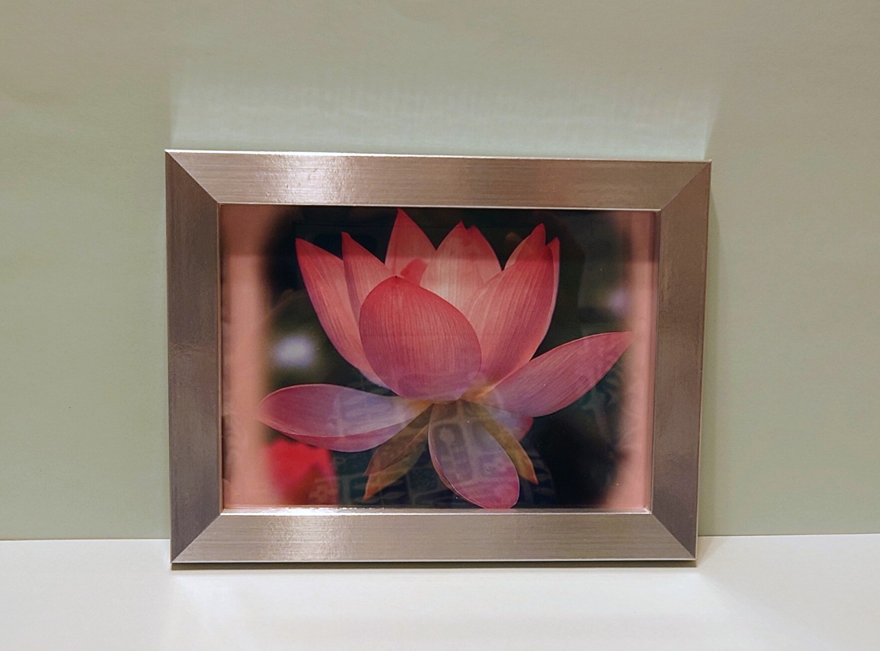 美しい蓮の画像入りシンプルなシルバーカラーのフレームです。